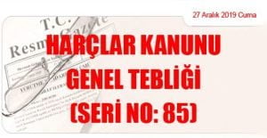 Hazine ve Maliye Bakanlığı (Gelir İdaresi Başkanlığı)’ndan: HARÇLAR KANUNU GENEL TEBLİĞİ (SERİ NO: 85) (27 Aralık 2019 Tarihli ve 30991 – 2.Mükerrer Sayılı Resmi