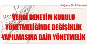 Hazine ve Maliye Bakanlığından: VERGİ DENETİM KURULU YÖNETMELİĞİNDE DEĞİŞİKLİK YAPILMASINA DAİR YÖNETMELİK (10 Ağustos 2019 Tarihli ve 30858 Sayılı Resmi Gazete’ de Yayımlanmıştır)