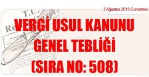 Hazine ve Maliye Bakanlığı (Gelir İdaresi Başkanlığı)’ndan: VERGİ USUL KANUNU GENEL TEBLİĞİ (SIRA NO: 508) (03 Ağustos 2019 Tarihli ve 30851 Sayılı Resmi Gazete’