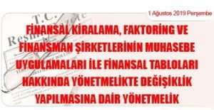 Bankacılık Düzenleme ve Denetleme Kurumundan: FİNANSAL KİRALAMA, FAKTORİNG VE FİNANSMAN ŞİRKETLERİNİN MUHASEBE UYGULAMALARI İLE FİNANSAL TABLOLARI HAKKINDA YÖNETMELİKTE DEĞİŞİKLİK YAPILMASINA DAİR YÖNETMELİK (01 Ağustos