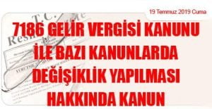GELİR VERGİSİ KANUNU İLE BAZI KANUNLARDA DEĞİŞİKLİK YAPILMASI HAKKINDA KANUN Kanun No. 7186 Kabul Tarihi: 17.7.2019 (19 Temmuz 2019 Tarihli ve 30836 – 1.Mükerrer Sayılı Resmi