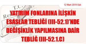 Sermaye Piyasası Kurulundan: YATIRIM FONLARINA İLİŞKİN ESASLAR TEBLİĞİ (III-52.1)’NDE DEĞİŞİKLİK YAPILMASINA DAİR TEBLİĞ (III-52.1.c) (12 Mart 2019 Tarihli ve 30712 Sayılı Resmi Gazete’ de