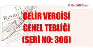Hazine ve Maliye Bakanlığı (Gelir İdaresi Başkanlığı)’ndan: GELİR VERGİSİ GENEL TEBLİĞİ (SERİ NO: 306) (15 Mart 2019 Tarihli ve 30715 Sayılı Resmi Gazete’ de