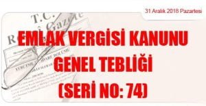 Hazine ve Maliye Bakanlığı (Gelir İdaresi Başkanlığı)’ndan: EMLAK VERGİSİ KANUNU GENEL TEBLİĞİ (SERİ NO: 74) (31 Aralık 2018 Tarihli ve 30642 – 3.Mükerrer Sayılı