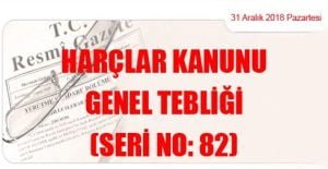 Hazine ve Maliye Bakanlığı (Gelir İdaresi Başkanlığı)’ndan: HARÇLAR KANUNU GENEL TEBLİĞİ (SERİ NO: 82) (31 Aralık 2018 Tarihli ve 30642 – 3.Mükerrer Sayılı Resmi