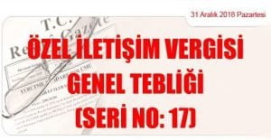 Hazine ve Maliye Bakanlığı (Gelir İdaresi Başkanlığı)’ndan: ÖZEL İLETİŞİM VERGİSİ GENEL TEBLİĞİ (SERİ NO: 17) (31 Aralık 2018 Tarihli ve 30642 – 3.Mükerrer Sayılı