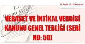 Hazine ve Maliye Bakanlığı (Gelir İdaresi Başkanlığı)’ndan: VERASET VE İNTİKAL VERGİSİ KANUNU GENEL TEBLİĞİ (SERİ NO: 50) (31 Aralık 2018 Tarihli ve 30642 –