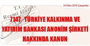 TÜRKİYE KALKINMA VE YATIRIM BANKASI ANONİM ŞİRKETİ HAKKINDA KANUN (24 Ekim 2018 Tarihli ve 30575 Sayılı Resmi Gazete’ de Yayımlanmıştır) Kanun No. 7147