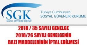 T.C. SOSYAL GÜVENLİK KURUMU BAŞKANLIĞI Emeklilik Hizmetleri Genel Müdürlüğü Tarih : 05.10.2018 Sayı : 96597630-204.03.01-E.13136969 Konu : 2018/26 Sayılı Genelgenin Bazı Maddelerinin İptal Edilmesi