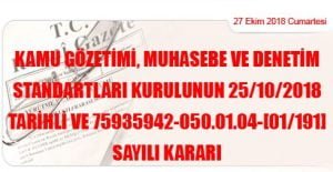 (27 Ekim 2018 Tarihli ve 30578 Sayılı Resmi Gazete’ de Yayımlanmıştır) Kamu Gözetimi, Muhasebe ve Denetim Standartları Kurulunun 25/10/2018 Tarihli ve