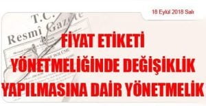 Ticaret Bakanlığından: FİYAT ETİKETİ YÖNETMELİĞİNDE DEĞİŞİKLİK YAPILMASINA DAİR YÖNETMELİK (18 Eylül 2018 Tarihli ve 30539 Sayılı Resmi Gazete’ de Yayımlanmıştır) MADDE 1 – 28/6/2014