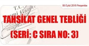 Hazine ve Maliye Bakanlığı (Gelir İdaresi Başkanlığı)’ndan: TAHSİLAT GENEL TEBLİĞİ (SERİ: C SIRA NO: 3) (06 Eylül 2018 Tarihli ve 30527 Sayılı Resmi Gazete’