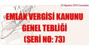 Hazine ve Maliye Bakanlığı ile Çevre ve Şehircilik Bakanlığından: EMLAK VERGİSİ KANUNU GENEL TEBLİĞİ SERİ NO: 73 (18.8.2018 tarih ve 30513 sayılı Resmi Gazete’de yayımlanmıştır)
