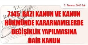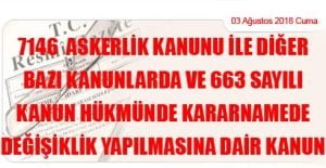 ASKERLİK KANUNU İLE DİĞER BAZI KANUNLARDA VE 663 SAYILI KANUN HÜKMÜNDE KARARNAMEDE DEĞİŞİKLİK YAPILMASINA DAİR KANUN Kanun No. 7146 Kabul Tarihi: 26.7.2018 (3 Ağustos 2018 tarih ve 30498