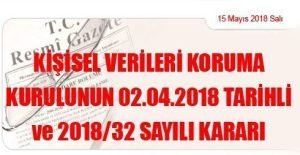 Kişisel Verileri Koruma Kurumundan: KİŞİSEL VERİLERİ KORUMA KURULU KARARI (15 Mayıs 2018 Tarihli ve 30422 Sayılı Resmi Gazete’ de Yayımlanmıştır) Karar Tarihi : 02.04.2018