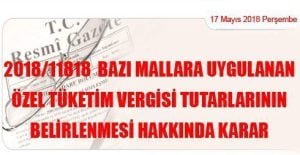 Karar Sayısı : 2018/11818 Ekli Kararın yürürlüğe konulması; Maliye Bakanlığının 14.5.2018 tarihli ve 64255 sayılı yazısı üzerine, 6.6.2002 tarihli ve 4760 sayılı Kanunun 12. maddesine göre,