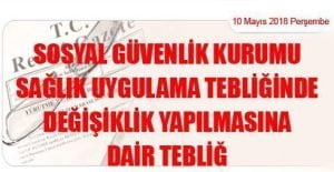 Sosyal Güvenlik Kurumu Başkanlığından: SOSYAL GÜVENLİK KURUMU SAĞLIK UYGULAMA TEBLİĞİNDE DEĞİŞİKLİK YAPILMASINA DAİR TEBLİĞ (10 Mayıs 2018 Tarihli ve 30417 – 1.Mükerrer Sayılı Resmi