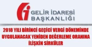 T.C. MALİYE BAKANLIĞI Gelir İdaresi Başkanlığı 5520 SAYILI KURUMLAR VERGİSİ KANUNU SİRKÜLERİ / 48 Konusu : Geçici Vergi Dönemlerinde Yeniden Değerleme Oranı Tarihi : 03/04/2018