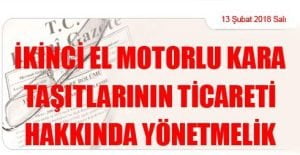 Gümrük ve Ticaret Bakanlığından: İKİNCİ EL MOTORLU KARA TAŞITLARININ TİCARETİ HAKKINDA YÖNETMELİK (13 Şubat 2018 Tarihli ve 30331 Sayılı Resmi Gazete’ de Yayımlanmıştır) BİRİNCİ BÖLÜM