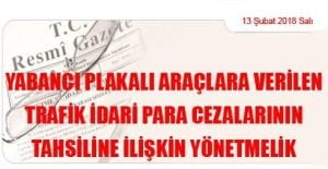 İçişleri Bakanlığından: YABANCI PLAKALI ARAÇLARA VERİLEN TRAFİK İDARİ PARA CEZALARININ TAHSİLİNE İLİŞKİN YÖNETMELİK (13 Şubat 2018 Tarihli ve 30331 Sayılı Resmi Gazete’ de Yayımlanmıştır) BİRİNCİ