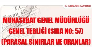 Maliye Bakanlığından: MUHASEBAT GENEL MÜDÜRLÜĞÜ GENEL TEBLİĞİ (SIRA NO: 57) (PARASAL SINIRLAR VE ORANLAR) (13 Ocak 2018 Tarihli ve 30300 Sayılı Resmi Gazete’ de