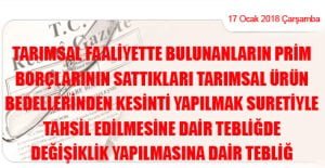 Sosyal Güvenlik Kurumu Başkanlığından: TARIMSAL FAALİYETTE BULUNANLARIN PRİM BORÇLARININ SATTIKLARI TARIMSAL ÜRÜN BEDELLERİNDEN KESİNTİ YAPILMAK SURETİYLE TAHSİL EDİLMESİNE DAİR TEBLİĞDE DEĞİŞİKLİK YAPILMASINA DAİR TEBLİĞ